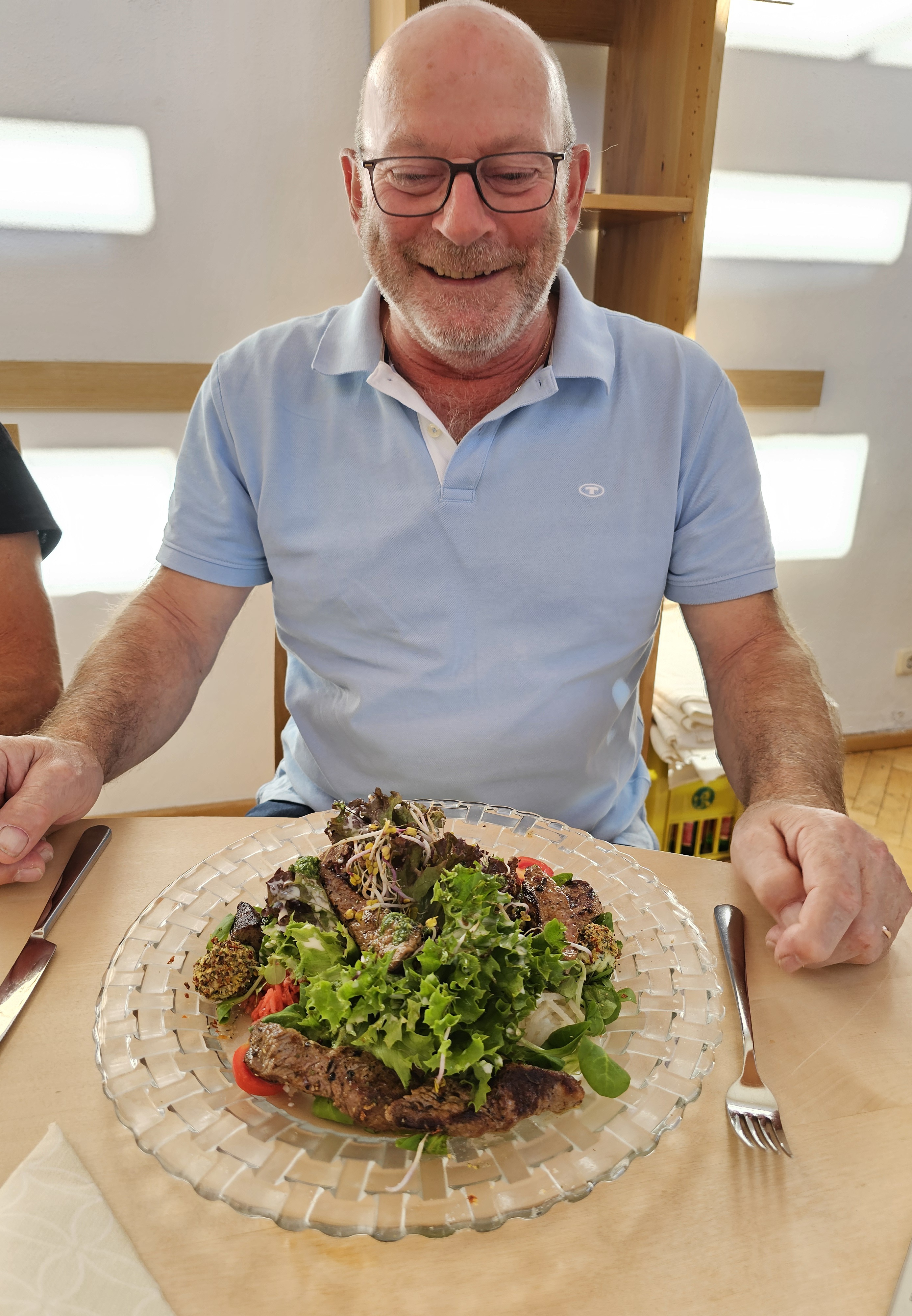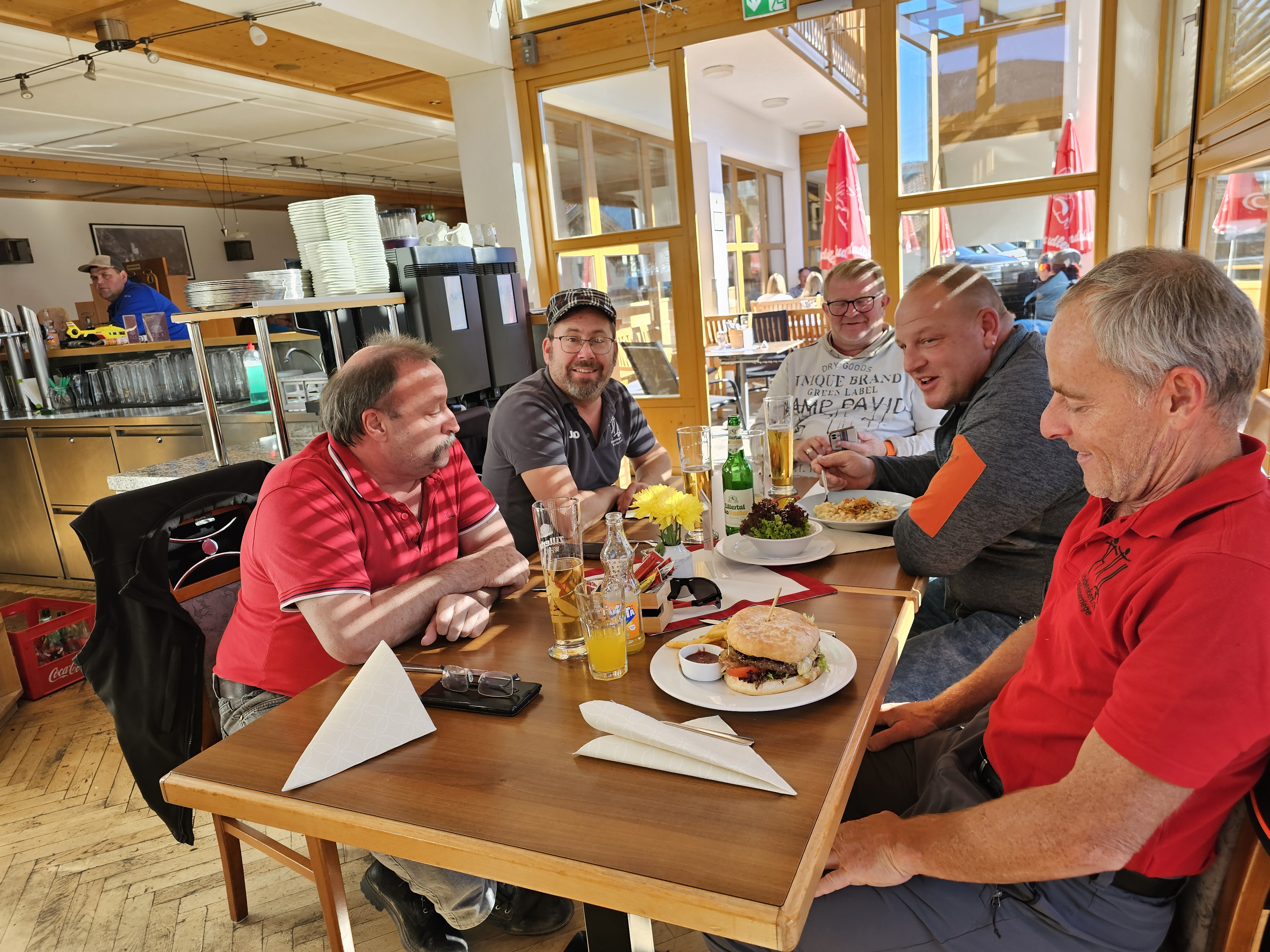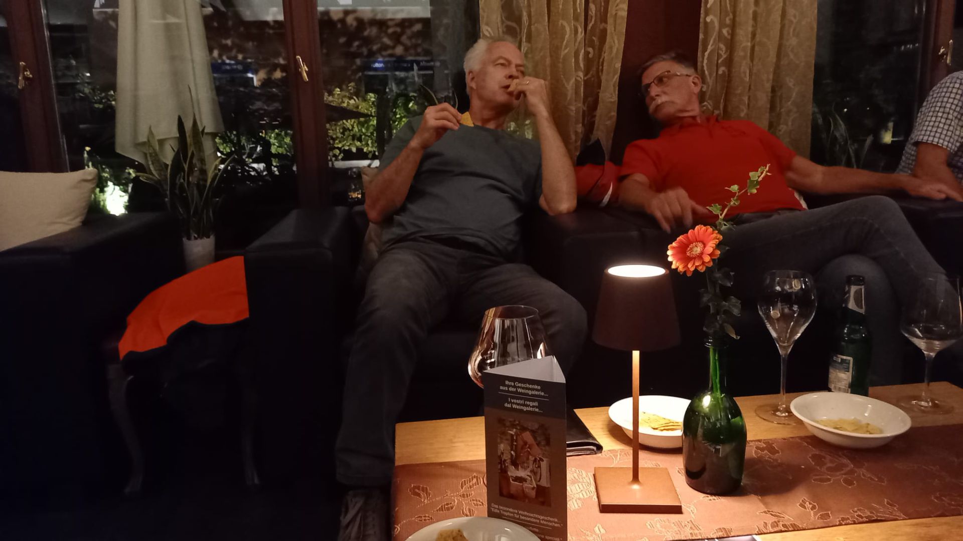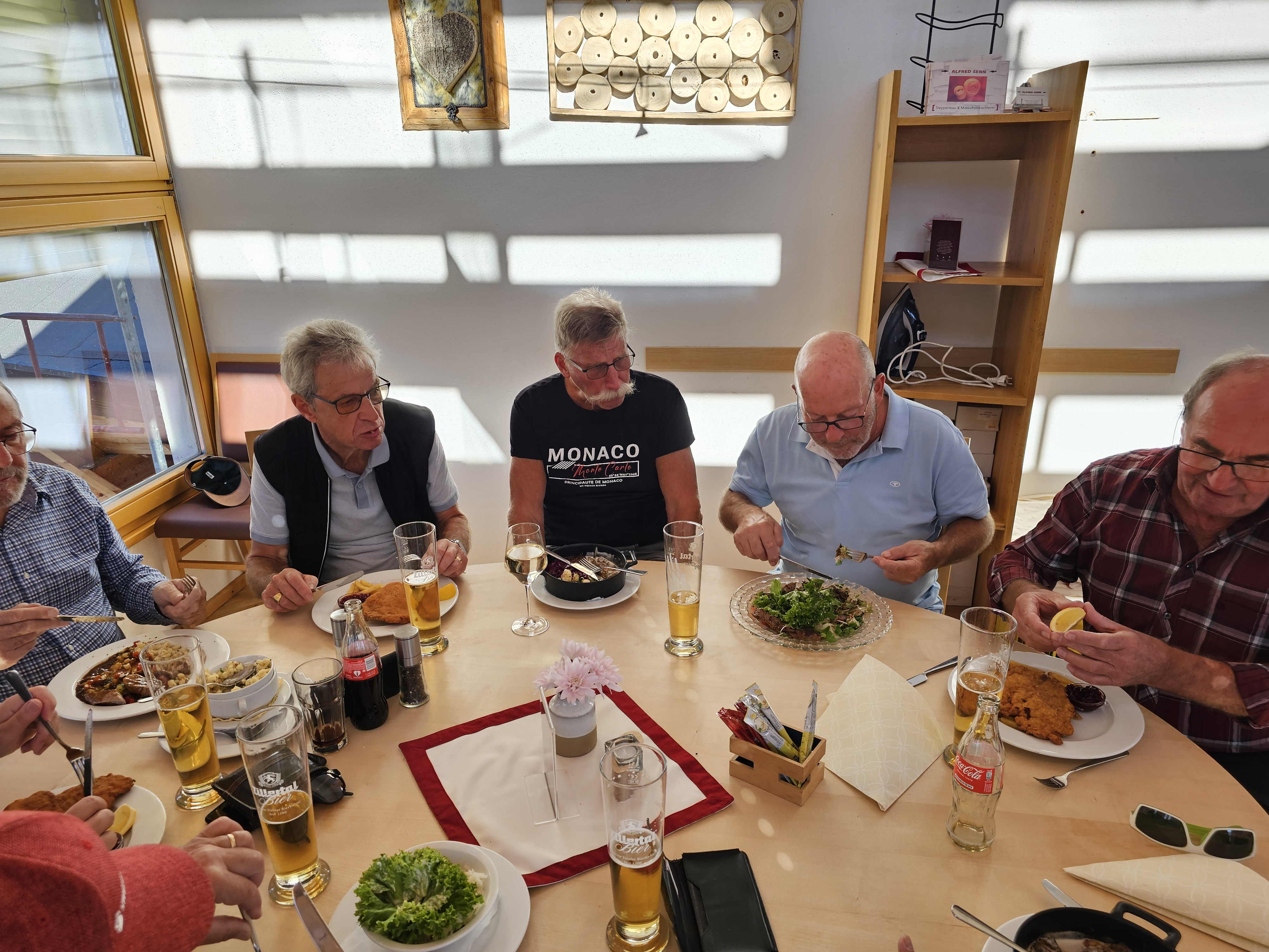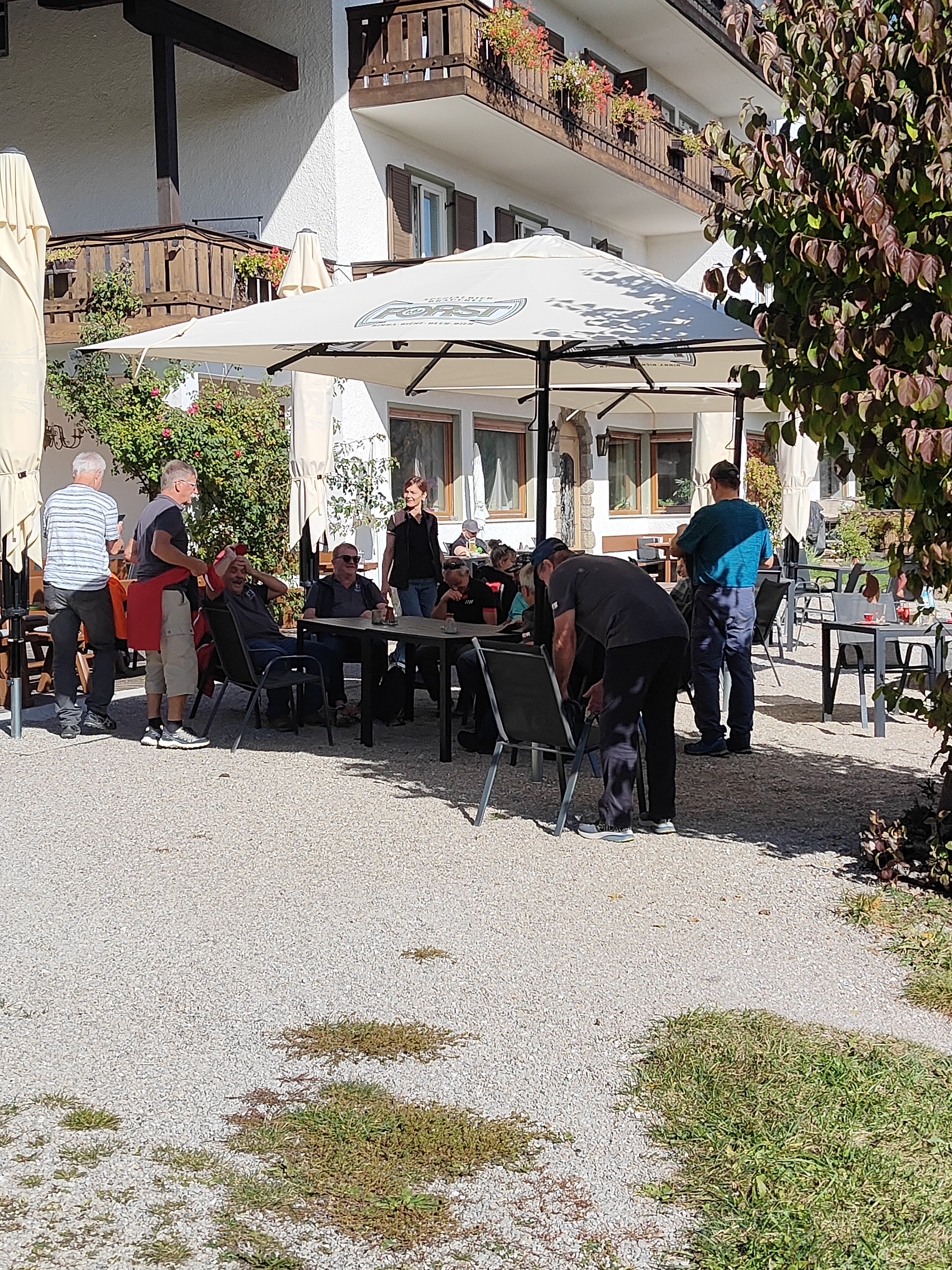 Es ging dann weiter ins Hotel «Zum alten Moar» in Vahrn. Nach dem Zimmerbezug und einem gemütlichen Beisammensein im Garten, liefen wir zusammen der Eisack entlang nach Brixen, wo wir das Nachtessen einnahmen. Im «Grillage» war dann Fleisch die Hauptmalzeit. Burger, Spare Ribs, Schnitzel, Filet Mignon – die Auswahl war riesig. Nach einem Abstecher in der Weingalerie begaben wir uns entweder per Fuss oder Bus wieder zurück ins Hotel. Bei einigen alten, bei Turner bekannt Liedern, bei allen möglichen Getränken und sportlichen Aktivitäten (sprich Tanzen) vergingen die letzten Stunden des ersten, resp. auch bereits die ersten Stunden des zweiten Tages.