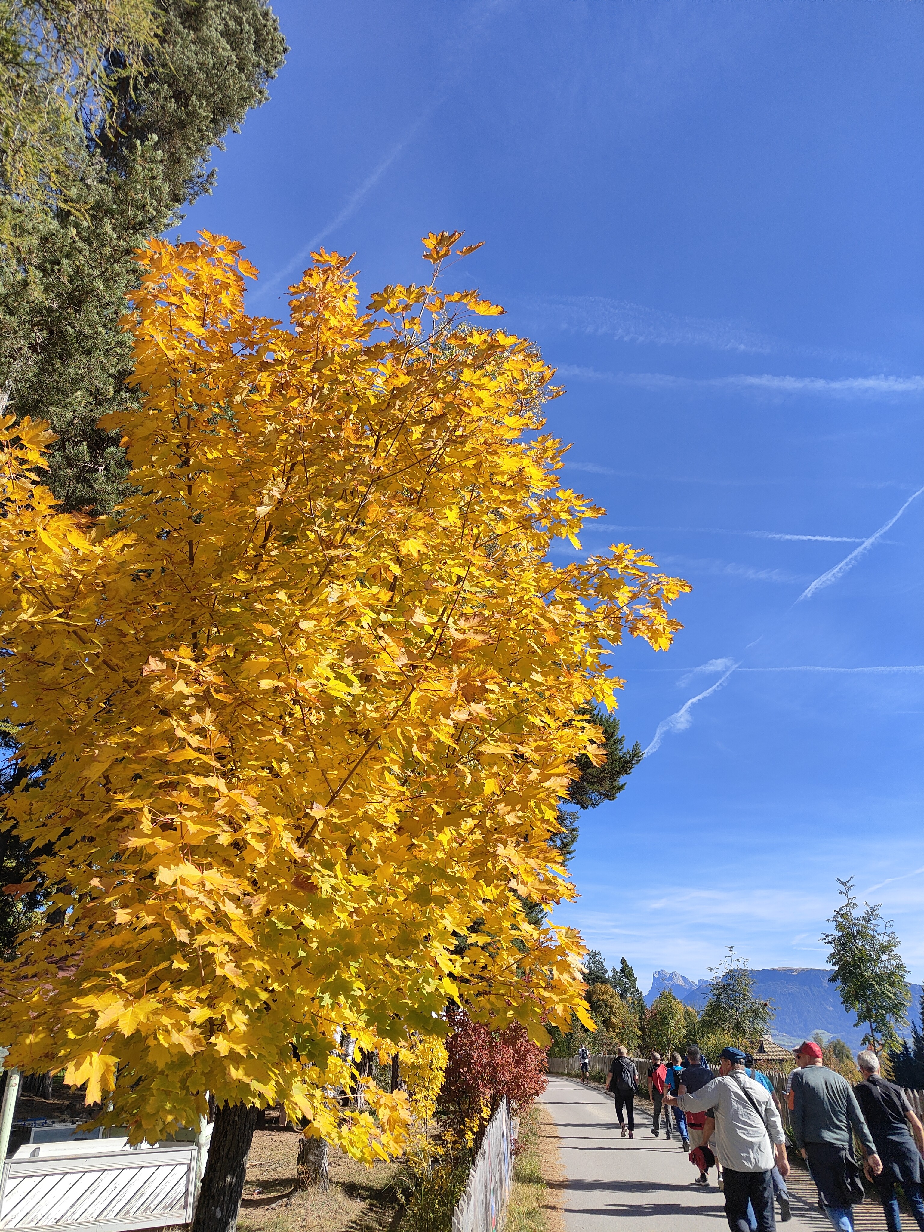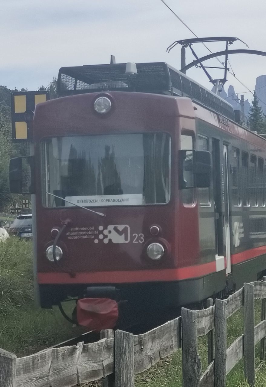 Am Samstag erkundeten wir die Region Bozen. Mit der Bahn fuhren wir nach Bozen und dann mit der Rittner Seilbahn nach Oberbozen hoch. Vor uns lag ein gemütlicher Streifzug über die Weiten auf den Ritten. Beim Zwischenhalt konnten wir die schöne Aussicht Richtung Dolomiten (Schlern – Seiseralm) bewundern. Einige nahmen eine kleine Auszeit und legten sich in die warme Sonne. Generell begleitete uns das Panorama der Dolomiten und der farbfrohe Herbst unseren Ausflug in der Höhe auf ca. 1220 m.ü.M. durchwegs. Zurück ging es mit der Rittnerbahn. Die Schmalspurbahn, die zu Beginn 1907 als Zahnradbahn von Bozen auf den Ritten fuhr, verbindet jetzt nur noch die Ortschaften Oberbozen und Klobenstein auf den Ritten.